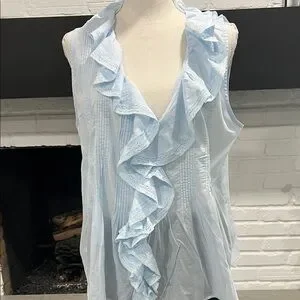Ann Taylor Light Blue Sleeveless Ruffle Blouse