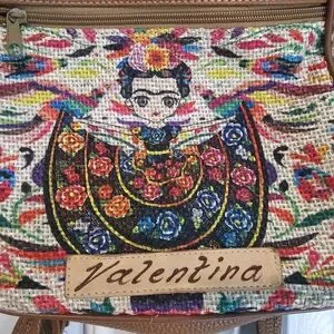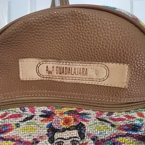 Embroidered Frida Kahlo Small Backpack Mexicana Multicolored and Tan OS