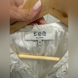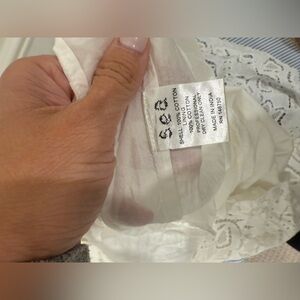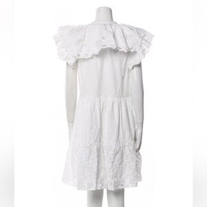 Knee length white cotton eyelet dress with ruffle details. Lined with pockets!! Worn x2