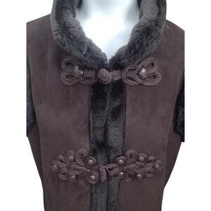 Coldwater Creek Faux Suede Fur Lined Toggle Vest Size XL Faceted Preppy Brown