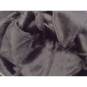 This is a beautiful faux suede Chocolate brown vest with faux fur inside & out. There are corded toggles with faceted buttons that makes this so classy. Shoulder to shoulder measures 17" x pit to pit measures 21" x shoulder to hem measures 26".