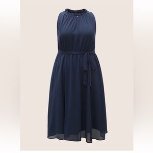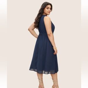 BloomChic Plain Sleeveless Frill Trim Pocket Belted Mock Neck Dress
