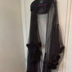 Chic black sheer shawl with delicate fringe details. Rave. Dance. Intimate. 🪩