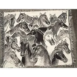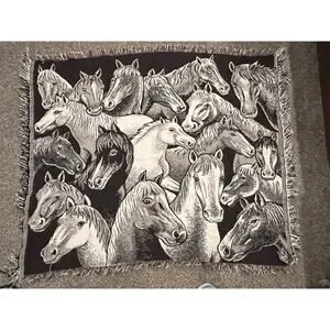 Horse tapestry blanket, woven, fringe throw, equestrian, western theme 40 x 48
