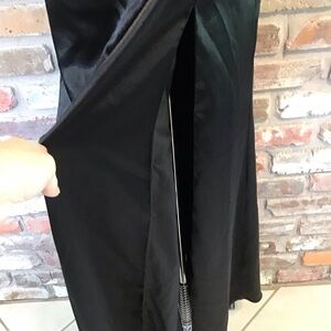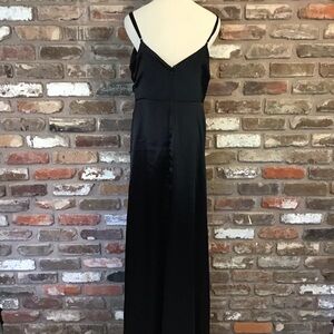 BIRDY GREY Women's Black Satin CATHERINE V-Neck Ruched Sleeveless Dress L