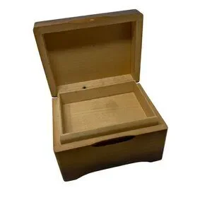 This vintage Reuge music box is crafted from warm-toned wood with a hinged lid featuring a beautifully hand-carved floral design on the top. Measuring 4" wide x 3" deep, it’s the perfect size for a small jewelry or trinket box. The fine craftsmanship and classic Reuge quality make this a timeless collectible.