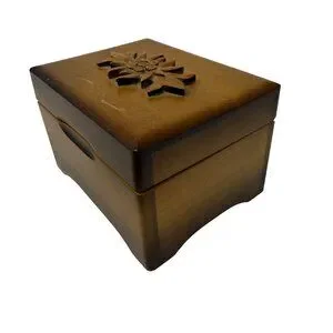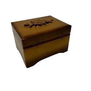 Vintage Reuge wood hinged music box 4" x 3" Hand Carved Floral Switzerland