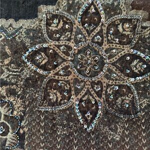 Stylish bohemian styles scarf with intricate beaded patterns. Features shades of brown and black. 100% Wool - 68” X 26” This is a gorgeous detailed scarf that will highlight your wardrobe!