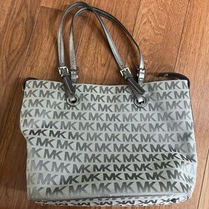 Chic Michael Kors tote with all-over MK logo. Features dual handles and spacious interior. Smoke free home. Good used condition