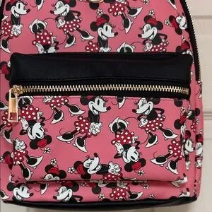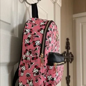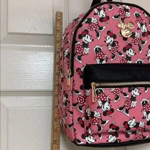 Charming backpack with Minnie Mouse design. Pink and black with gold accents. Ideal for kids. New!