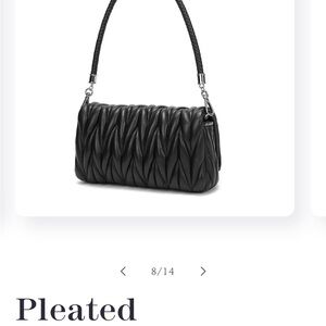 Such a chic versatile bag with 3 different types of straps- removable/ interchangeable! One is braided leather, one is of stones, one is of a chain with leather. The leather on the bag is very smooth, it has a lock with rhinestones on it. Inside has 2 sections separated by a zippered pocket. Only remember wearing the bag 1-2 times with the crystal strap and the braided strap. Didn’t get to use the chain strap. The metal part of the lock and the brand name plate inside is a little clouded, it was like that since I got it as it was hard to remove the protective stickers/ plastic it had. Other than that excellent shape! Retail was around $362.