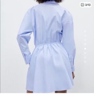 Chic light blue wrap dress by Zara. Features long sleeves and a flattering fit. Ideal for versatile styling.