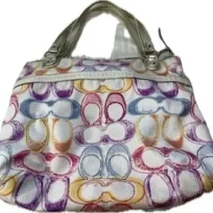 Large Coach Colorful Patterned Women's Bag- metallic handles, canvas Monogram C