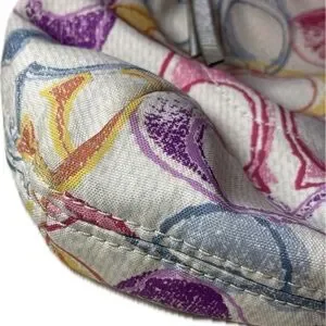 This stylish women's bag features a vibrant pattern with shades of red, pink, yellow, and purple. Perfect for adding a pop of color to any outfit.