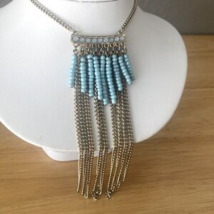 Anthropologie Shiraleah Eulalia Necklace Turquoise Fringe Chains