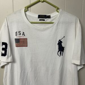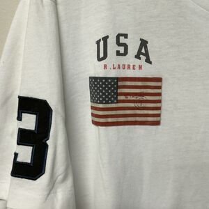 Polo Ralph Lauren T Shirt USA Flag Big Pony 3 Patch Custom Fit Boxy men XL EUC