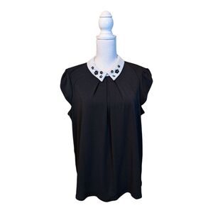 Elle Sleeveless Blouse With Flower Accents on Black Collar