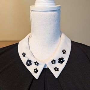 Color: White Shirt and Black Collar with Black Flower Accents