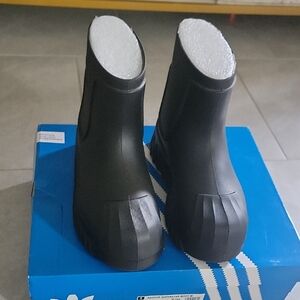 Sleek black boots by Adidas. Ideal for wet weather or when you just want to dress cool. Womens's size 9.5. men's 8. Worn once.