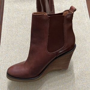 Elegant brown leather boots with a sleek design. Ideal for versatile styling. Wedge heel excellent condition. If you ❤️ item/ share it / make an offer.
