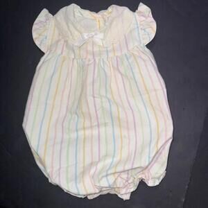 Vintage Healthtex Baby Bubble Retro- Vibrant Colors Striped 9 Months Health-Tex one piece striped set in good preowned condition. There are a couple of small untreated marks on the suit as shown in pics but overall good condition.