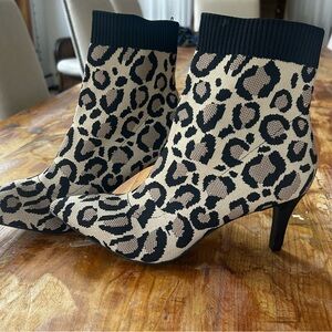 MIA Saddie Leopard Print Stretch Fabric Bootie