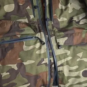 Description: Very good condition! Similar to LL Bean's Rugged Ridge Parka: waterproof, hood with adjustable visor & toggle cinch, full zip to protect face, velcro adjustable sleeves, interior waist liner to keep out snow, under arm zipper vents, toggle at hem, pockets everywhere (3 each side of chest/6 exterior, 2 interior incl attached lens wipe).