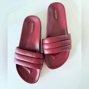 Elegant deep red leather beatrice valenzuela slide sandals. Sleek and stylish design. Perfect for casual wear. Size 7. Received as a gift and only worn once. Size up if between sizes