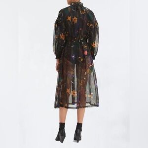 Silk organza sheer dress. Interior tag has been cut out, but otherwise in excellent condition. Size xs but will also fit a small. Drop shoulders. Elastic waist measures 13”. pit to pit measures 18”. Many style options!