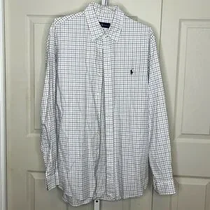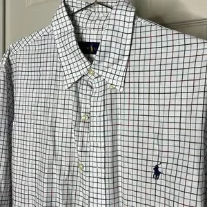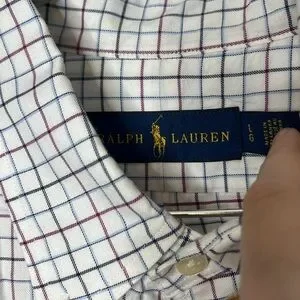 Ralph Lauren Golf Shirt Mens Size large Plaid Tilden Long Sleeve Button Down