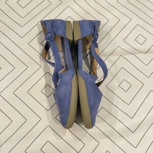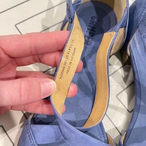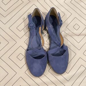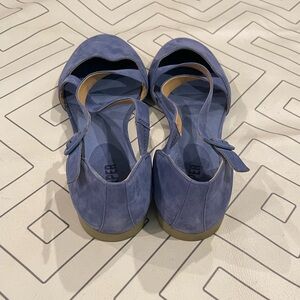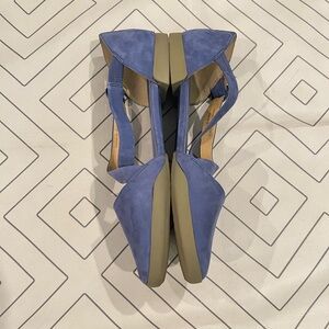 Size 41 or US 10. Blue colored round toe cut out flats with criss cross ankle buckle strap. Very small platform. Soft material. Like new.