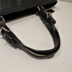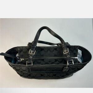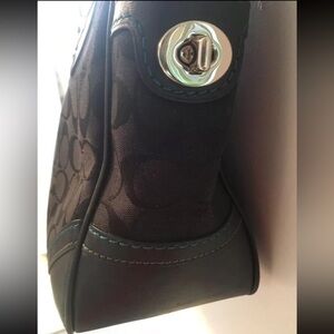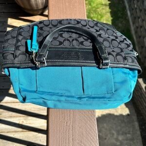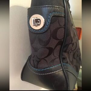 Coach Leatherware 2005 Vintage Signature Jacquard Black Handbag Teal Stitching