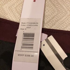 Parker Women’s Brown/Burgundy Suede Grommet Skirt. Hidden side zipper. Made of genuine leather. Measures about 15” from top to bottom hem. Size 6. NWT.