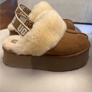 Cozy suede slippers with plush lining. Comfortable slingback design. Worn once. No damage