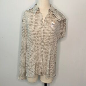 Talbots pure silk Cream Textured Button-Down Shirt size 16