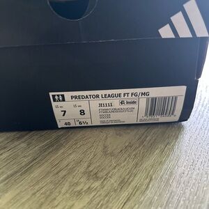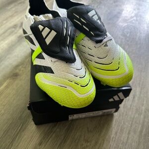 Brand new with tags. Adidas Predator League soccer firm ground soccer cleats. It has attached elastic flaps to cover laces and keep them in place.
