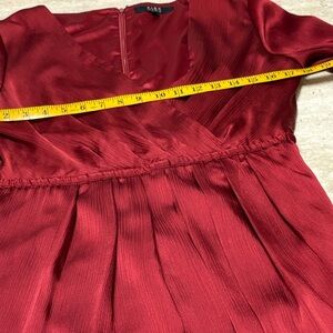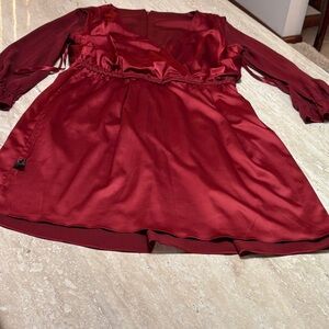 Chic long sleeve dress with a wrap design. Deep red hue adds elegance. Perfect for any event. from a pet free home. See measurements in photos.