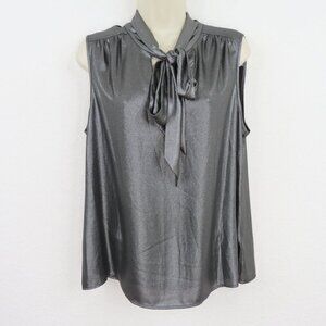 Calvin Klein Womens Large Metallic Silver Gray Sleeveless Neck Tie Shirt Blouse