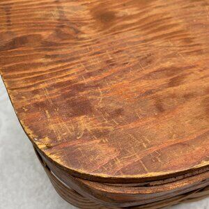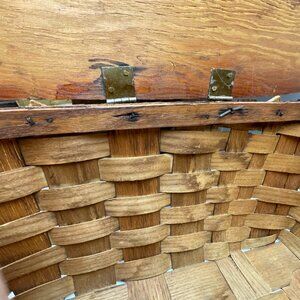 Good Vintage Used Condition.* Vintage 1950's woven wood picnic basket/hamper with 2 handles - rare find! 18" Long x 11 1/4" Wide x 8 1/2" Tall. Solid wood, hinged flip-top lid. Beautiful medium brown wood. Well-constructed, well-loved and used often. Inside is in excellent condition. 1 hinge has been repaired & is loose, scratches on top & handles, wear on outside, 1 handle is slightly warped but fits over basket to raise/lower, red discoloration on 1 side & 1 handle (see photos) -- all add character to this 75-year-old, well-used item. From illness/smoke/pet-free home. NOTE: Poshmark's flat rate shipping fee is an especially good deal on this item, given its weight. Cannot be bundled because, boxed, it weighs just under Posh's 5lb flat rate limit.