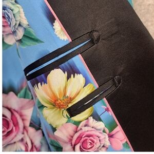 Elevate your style with this striking turquoise blazer featuring a sleek black lapel. Perfect for formal occasions or adding a touch of sophistication to your wardrobe.