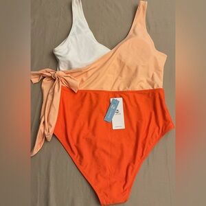 Cupshe Colorblock One Piece Swimsuit - White, Pink, and Orange