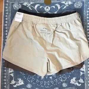 Nike running shorts in cream and brown. Lightweight and breathable design.