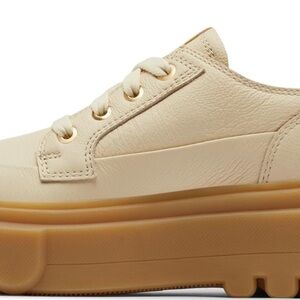Elevate your style with these chic cream platform sneakers. Perfect for casual outings, these shoes offer both comfort and fashion-forward design. • Leather upper, insole