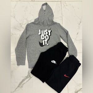 Nike Kids Gray Hoodie and 2 Black Joggers Set Size 7/8.
