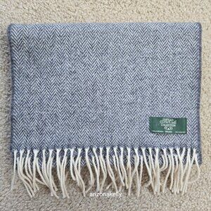 A classic grey lambswool scarf in a herringbone pattern that will never go out of style. Woven in Ireland. No flaws. No holes, pilling, pulls, runs, snags, stains, pet hair, or odor.