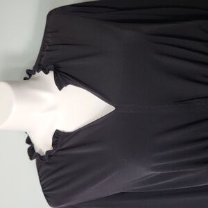 Keywords: Simply Vera Wang blouse, peplum top, size XXL, women’s black top, elastic waist blouse, V-neck top, polyester spandex blend, stylish workwear, comfortable fit, casual chic blouse, feminine detailing.