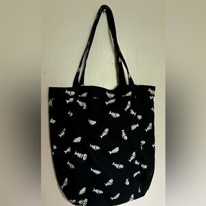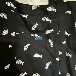 Vans Black and White Skeleton Fish / Fishbone Tote with Pockets Sardine