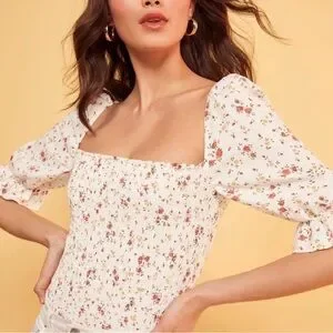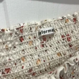 Reformation ‘Clementine’ Floral Print Smocked Puff Sleeve Linen Top