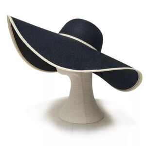 Chic and stylish navy wide brim hat perfect for sunny days. Features a classic design with a touch of elegance.