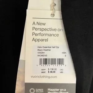 NEW! Vuori Halo Essential Half-Zip Pullover Long Sleeve Top Black Heather Small
